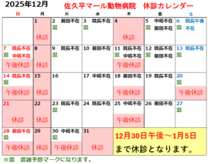 この他、臨時休診、獣医の臨時不在等ある場合がございます。ご了承ください。