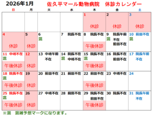 この他、臨時休診、獣医の臨時不在等ある場合がございます。ご了承ください。