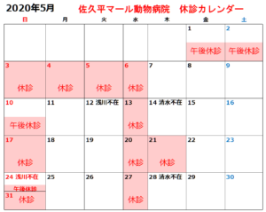 5月の休診日および、